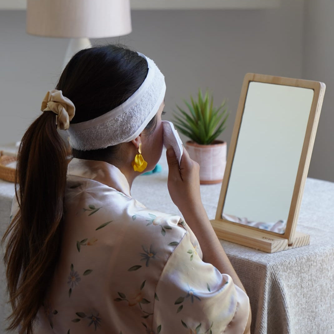 Un objeto simple que transforma tus espacios y momentos. Hecho a mano en Chile con materiales sustentables, su borde de madera aporta calidez y estilo, creando un rincón especial donde puedas mirarte con amor, presencia y sin apuro.